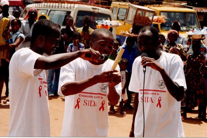 02.09.2013: Mit unterhaltsamen Straßentheater-Episoden klärt das Team 2 AD auf Marktplätzen und Busstationen über HIV/Aids auf.