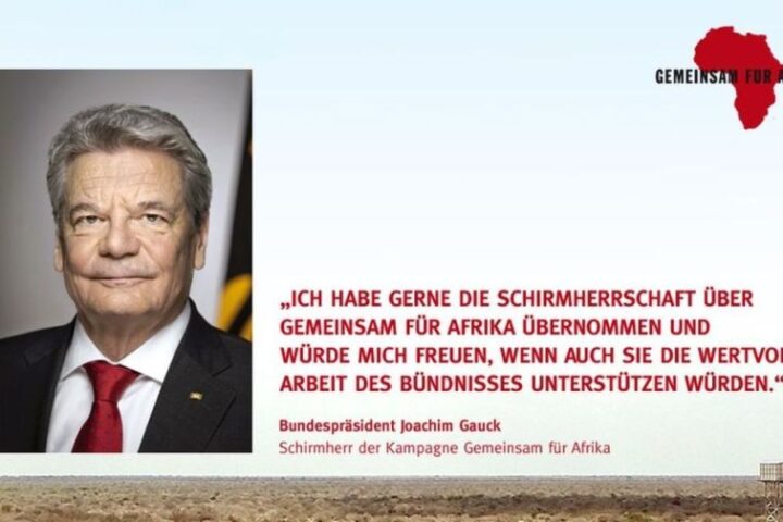 Schirmherr des Bündnisses GEMEINSAM FÜR AFRIKA ist Bundespräsident Joachim Gauck.